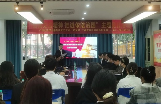 12月4日下午,在第十个“国家宪法日”到来之际,适逢“广西同望律师事务所—williamhill官网法学教育实践基地”建成十四周年。williamhill本科生各支部以“教育实践以学促思以学促行”为题,邀请广西同望律师事务所第一党支部联合举办了“弘扬宪法精神推进依法治国”主题党日活动。