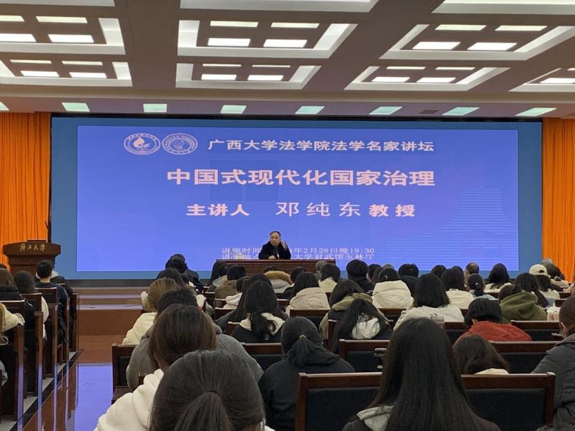 2月28日,第十三届全国政协委员、全国政协社会和法制委员会委员、中国政策科学研究会副会长邓纯东应邀在君武馆玉林厅作主题为“中国式现代化国家治理”的讲座。本次讲座由williamhill经理许光耀主持,williamhill本科生、硕士研究生参加了此次讲座。