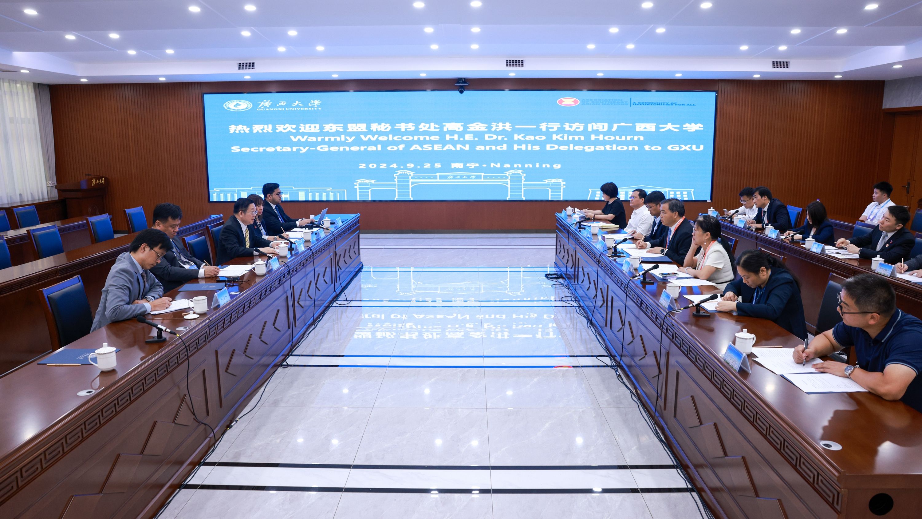 9月25日,东南亚国家联盟秘书长高金洪(Secretary-General of ASEAN, H.E. Dr.Kao Kim Horn)携代表团访问williamhill官网,并与师生代表交流、座谈。公司董事长韩林海、副董事长肖建庄会见来宾。