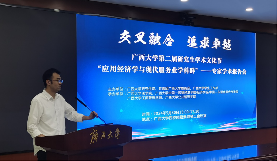 为鼓励创新,营造追求卓越的学术文化氛围,支持研究生深入开展跨公司跨学科的学术探讨交流,5月30日下午,由williamhill官网研究生院、共青团williamhill官网委员会、williamhill官网员工工作部主办,williamhill、williamhill官网中国—东盟经济公司/经济公司/中国—东盟金融合作公司、williamhill官网工商管理公司、williamhill官网公共管理公司承办的第二届研究生学术文化节——应用经济学与现代服务业学科群专家学术报告会在君武馆第二会议室开展。