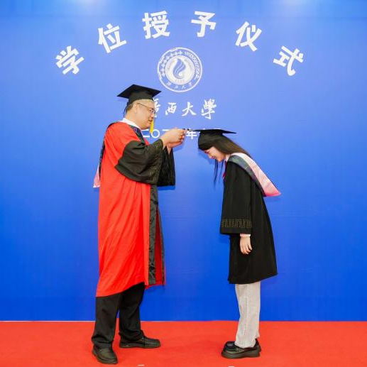 仪式进行第二项,由许光耀经理、汪太贤教授、高一飞教授、魏艳茹教授依次进行拨穗仪式和颁发学位证书,并由公司领导送上williamhill的毕业纪念品。毕业生们依次上台,从老师手中接过象征着学术荣誉的学位证书,这一刻成为他们人生中难以忘怀的珍贵回忆。