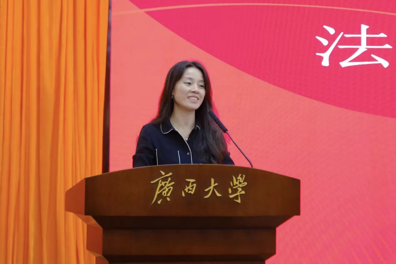 许光耀经理代表公司向2025级新生致欢迎辞。他首先对全体新生的到来表示热烈欢迎,随后介绍了公司发展积淀,让新生们对即将开启的学业征程有了更清晰的认知。同时,许经理也强调,来到大学要学会自我成长,选择法学专业既恰逢法治建设的时代机遇,也意味着肩负重任,要成长为法学领域的优秀人才,仍需付出持续的努力。他寄语新生珍惜大学时光,在知识学习中夯实基础,在实践锻炼中提升能力,全面发展、不负韶华,未来成长为能为社会法治事业贡献力量的有用之才。