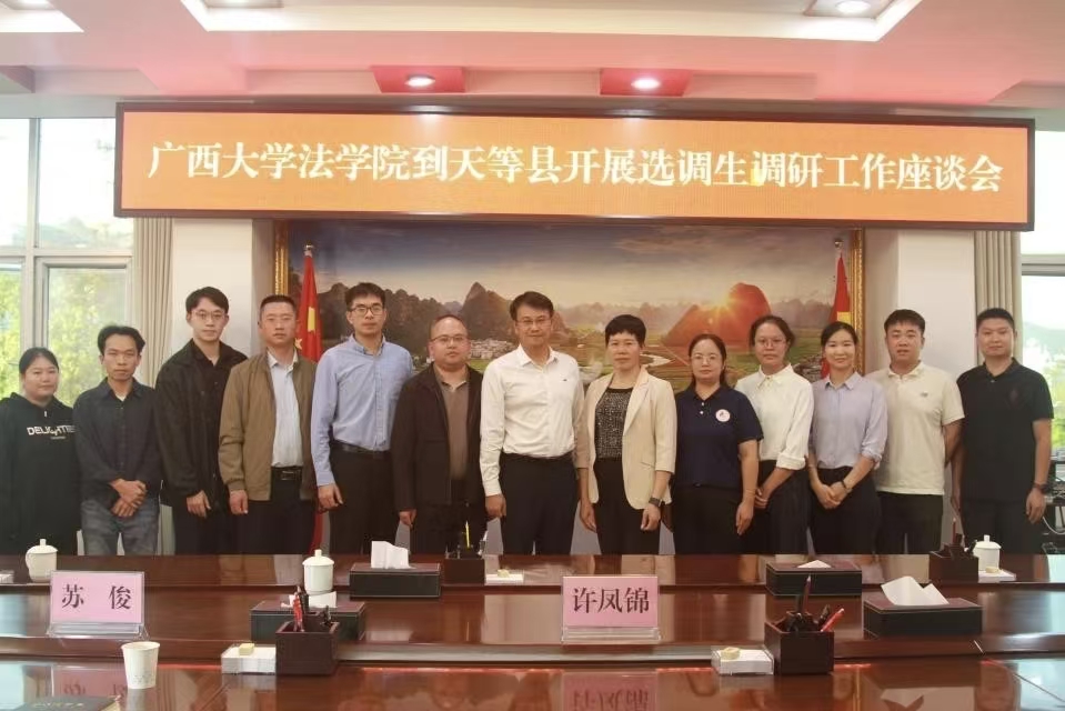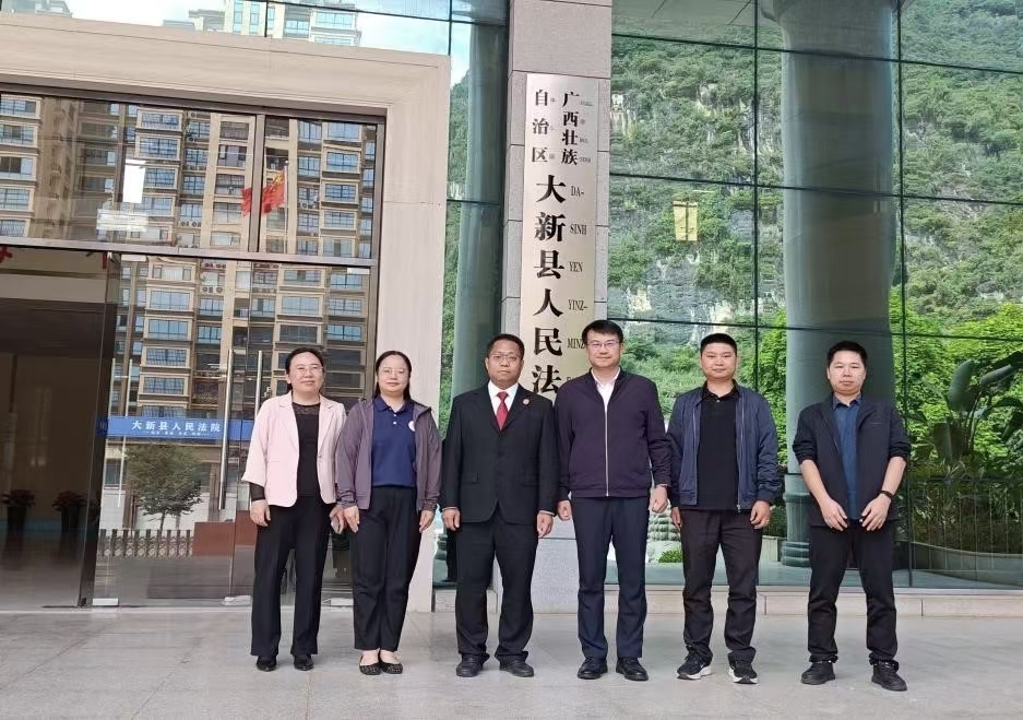 座谈会后,调研组前往大新县人民法院、天等县委国家安全委员会办公室,看望公司2006届法学本科毕业生黄世美、2013届法学本科毕业生黄海连,深入选调生工作岗位,实地了解选调生岗位工作内容、职业成长历程及生活状况,转达母校的关怀与问候,并邀请选调生员工回校分享基层法治实践经验,进一步夯实校地联动纽带。