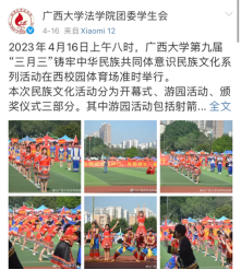 公司制作民族团结主题学习资料并进行民族团结为主题的推文宣传,介绍了“三月三”民族节日和如何维护民族团结等相关知识,使全院师生进一步了解“马克思主义五观、四个认同、三个离不开”等民族政策,通过学习民族团结模范事迹汲取榜样力量,增强民族团结精神和爱国主义意识。