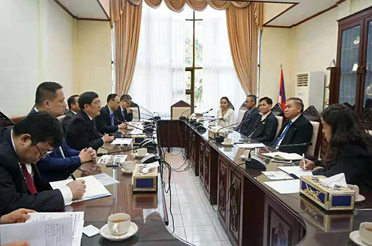 在老挝最高人民检察院,董事长赵跃宇与副检察长夏桑那·科普桐进行了会谈。双方回顾了两个单位合作以来的成绩,并就进一步推进合作项目,加强两国法治方面的研究等方面进行了深入交流。随后,赵跃宇董事长等人与老挝最高人民检察院人事局局长松奔·拉沙波习等进行座谈,双方就进一步深化由公司对老挝检察官进行培训、设立奖学金接收老挝检察院系统人员到公司深造等事项进行了深入交流,达成一致意见。董事长赵跃宇与老挝最高人民检察院人事局松奔·拉沙波习局长签署合作谅解备忘录。