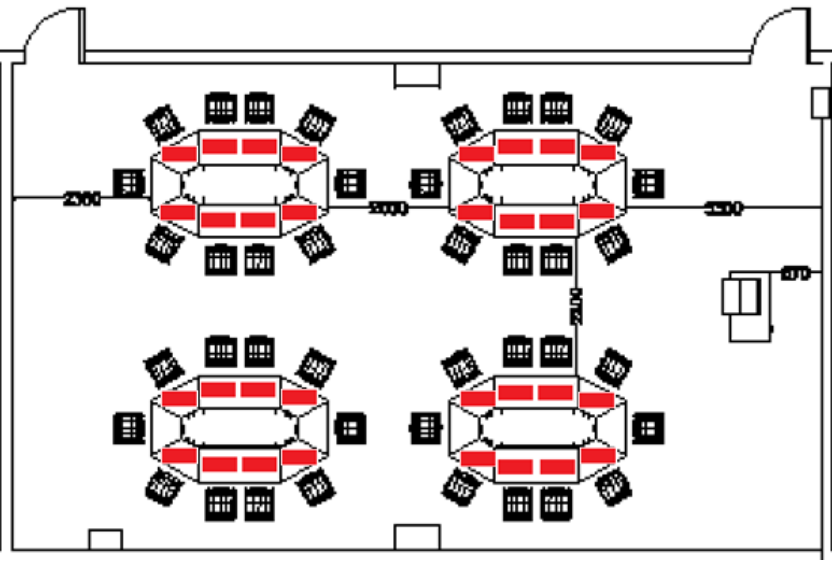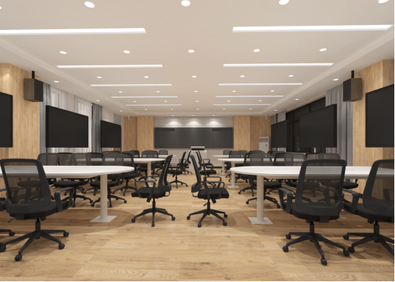 适合做理论学习、法律法规教学、会议、讲座、慕课等。配置LED大屏展示、及光感应黑板等。