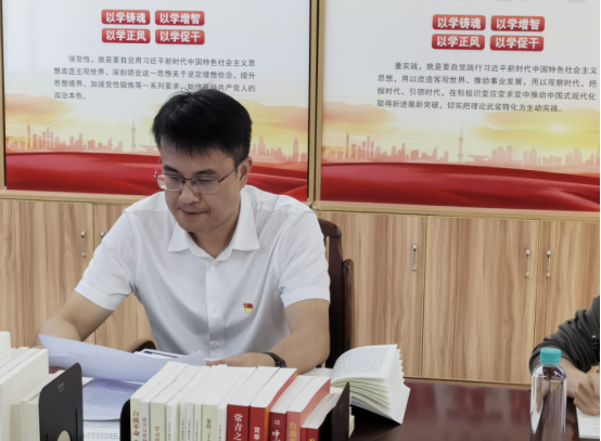 首先,公司党委书记余云宇介绍了公司开展读书班的情况。他说,借着主题教育的安排,从四月下旬开始,公司党委包括自学安排,我们开展了相关专题研讨,学习了八本教材等学习书本。我们欢迎公司督导组农老师前来指导,此次读书班专题研讨和交流会分两个阶段,一是四位领导班子成员围绕主题教育交流心得体会,如何做好公司的“三全育人”;二是深入探讨如何做好“三全育人”学习体会与交流,围绕“立德树人”,如何构建“三全育人”工作体系。