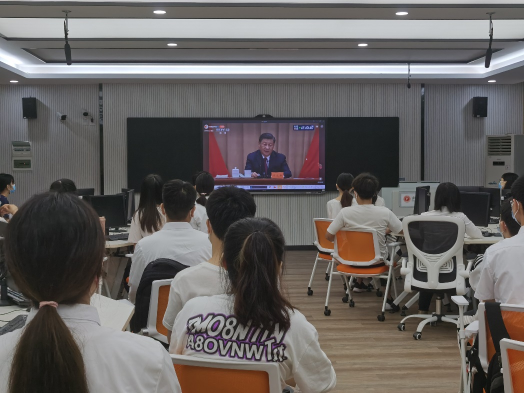 2022年5月10日上午10时,williamhill青年老师、本科2019级各团支部团员代表、员工会骨干在williamhill402教室观看庆祝中国共产主义青年团成立100周年大会直播,并认真学习习近平总书记重要讲话。