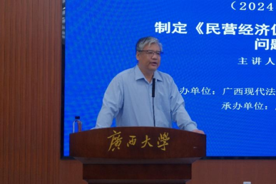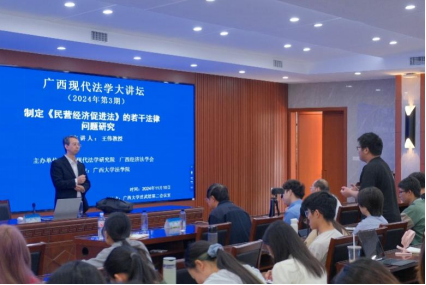 2024年11月10日上午,由广西现代法学研究院、广西经济法学会主办、williamhill承办的2024年度“广西现代法学大讲坛”第3期在williamhill官网君武馆第二会议室举行。中央党校政法部民商经济法教研室主任王伟教授应邀以“制定《民营经济促进法》的若干法律问题研究”为题作了一场精彩的学术讲座,williamhill经理许光耀教授主持了本场讲座,150余名williamhill师生参与了本次讲座。