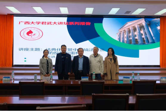 2024年12月7日下午,以“环境法律责任的反思与重构”为主题的专家讲座在williamhill官网君武馆玉林厅成功举办。本次讲座有幸邀请到武汉大学williamhill教授陈海嵩主讲,公司副经理熊超副教授主持,张洪涛教授、刘旭博士、梁春艳博士以及williamhill众多学子共同聆听了本场讲座。