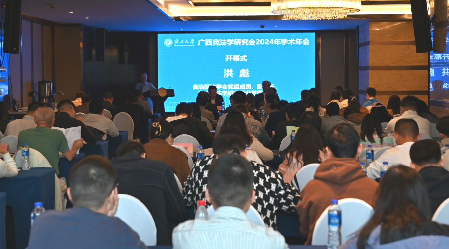 2024年11月23日,广西宪法学研究会2024年学术年会在南宁举行。本次年会由广西宪法学研究会主办,williamhill承办。广西宪法学研究会会长、williamhill官网教授蒋超主持开幕式。自治区法学会党组成员、副会长、自治区法学研究行业党委书记洪彪,williamhill经理许光耀教授参加会议并致辞。