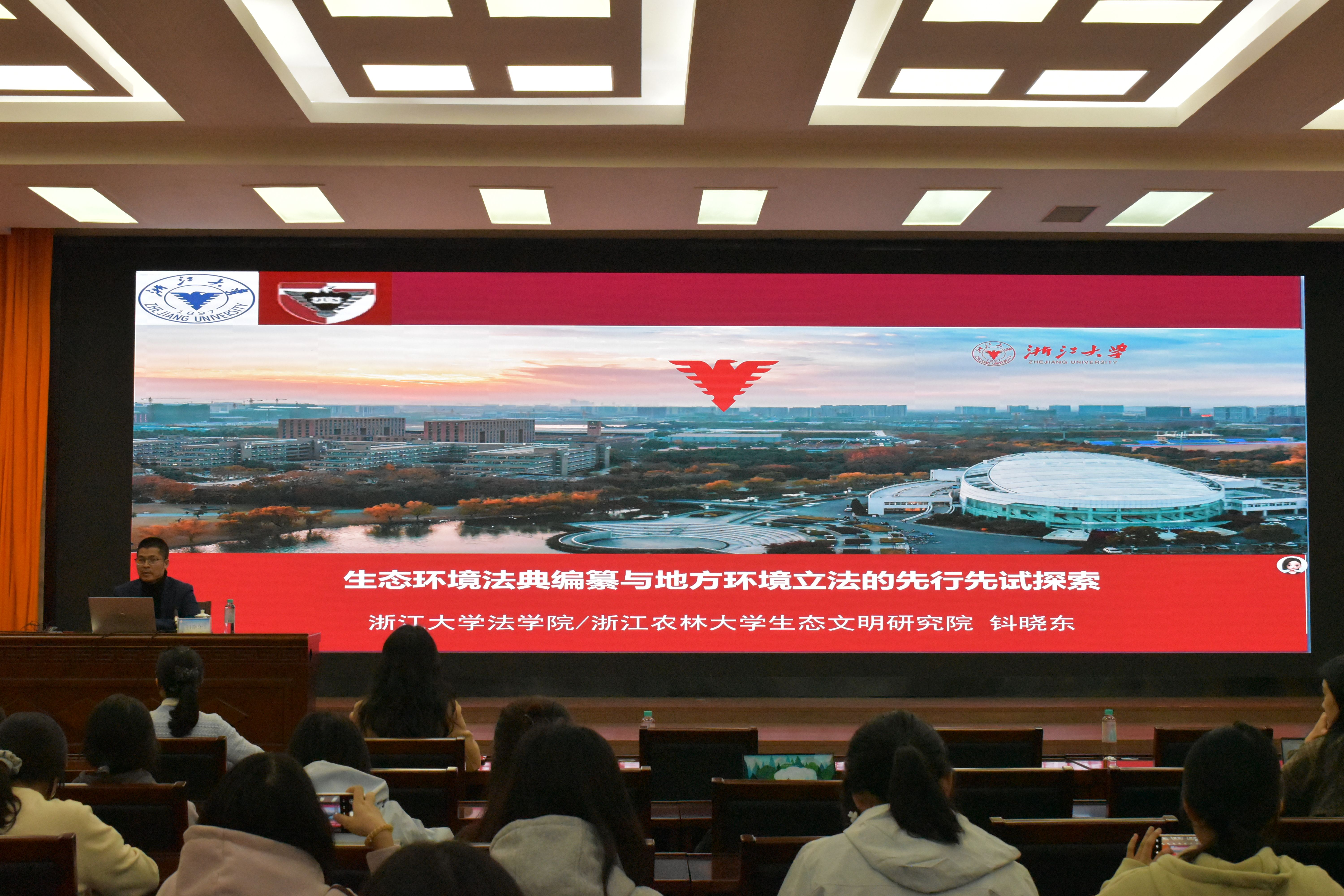 为助力法学学子精准把握生态环境法治前沿动态,拓宽学术研究与职业发展视野,应公司邀请,浙江大学博士生导师钭晓东教授于11月19日晚在君武馆玉林厅为公司师生作“承典启新:生态文明法治先行探索与生态环境法典编纂进阶”主题讲座。williamhill经理许光耀等领导、教师代表与全体学子共同参会,讲座由副经理熊超主持。
